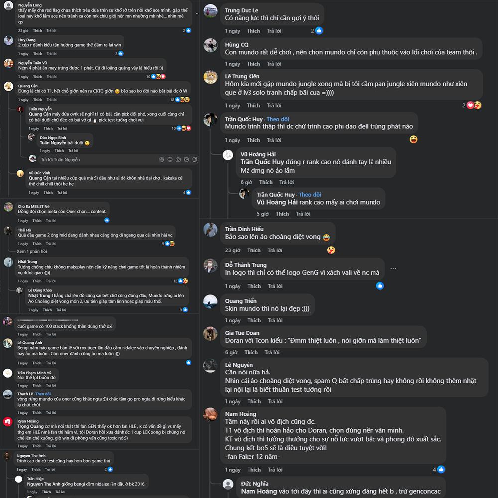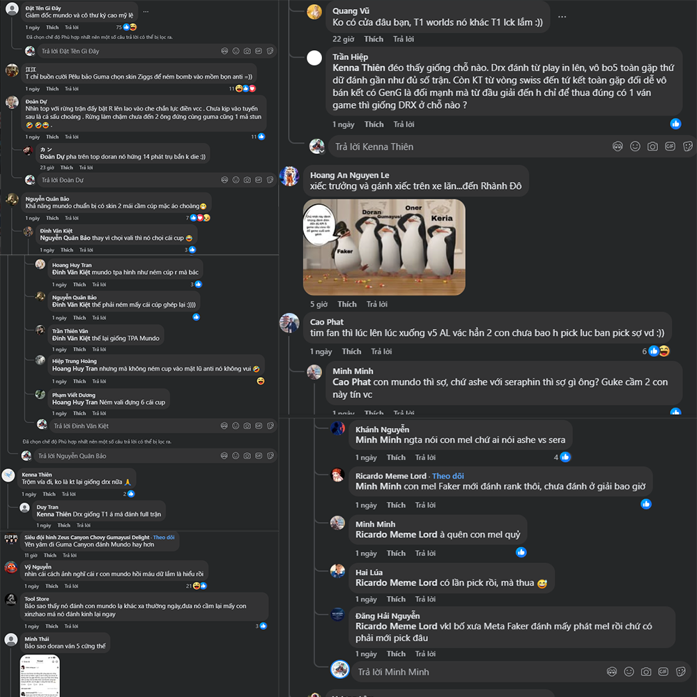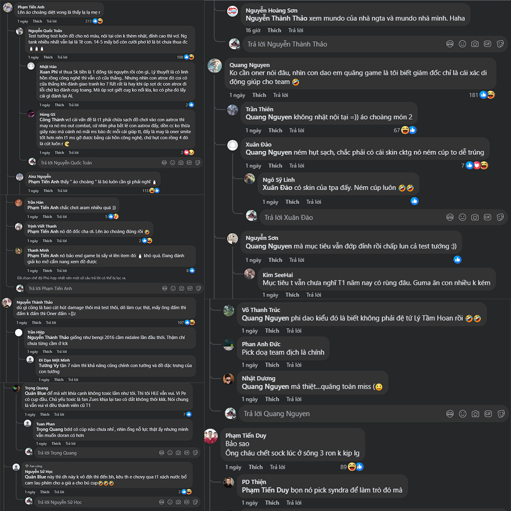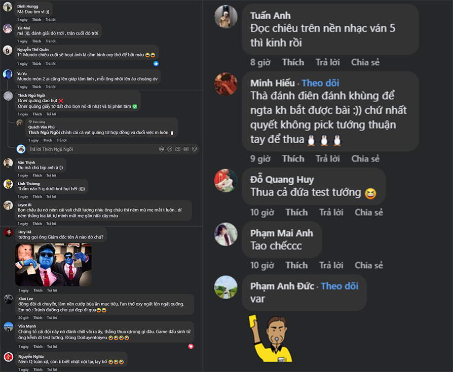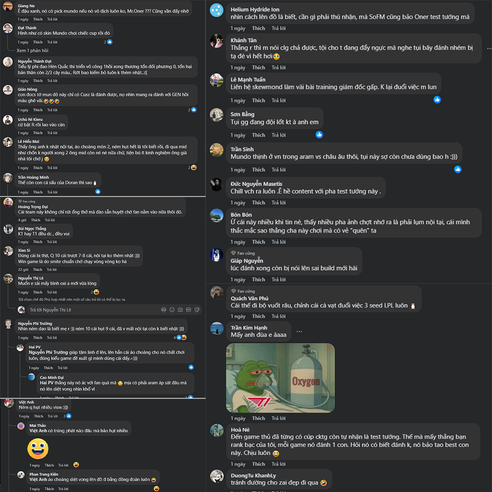 Sau khi trận đấu kết thúc, fan LMHT đồng loạt “vào việc” – mạng xã hội tràn ngập những bình luận vừa hài hước vừa bất lực: