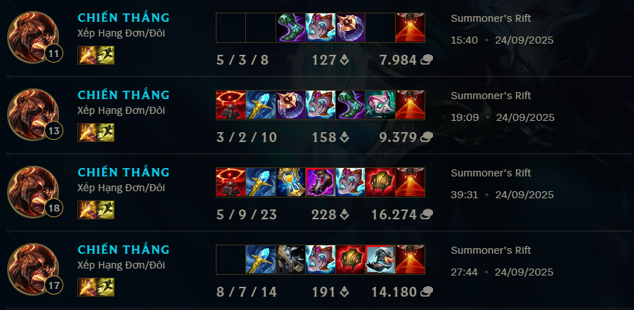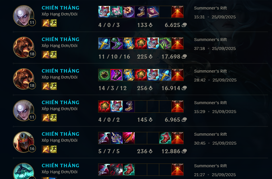 - Chọn tướng tủ (One Trick Champ): Tập trung vào 1–2 vị tướng quen tay nhất. Dù meta thay đổi, sự ổn định vẫn quan trọng hơn.