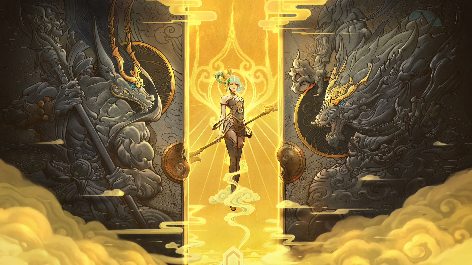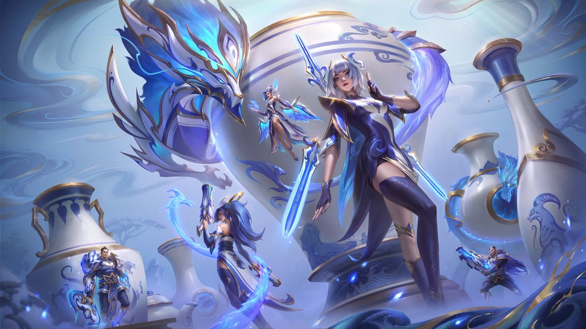 - Thiên Cung Thần Long: Lee Sin (Biến Thể Thần Thoại), Ezreal (Hàng Hiệu), Master Yi, Kai'Sa, Janna, Diana, Smolder – dàn tướng mang hơi thở Long Thần Hoàng Gia.