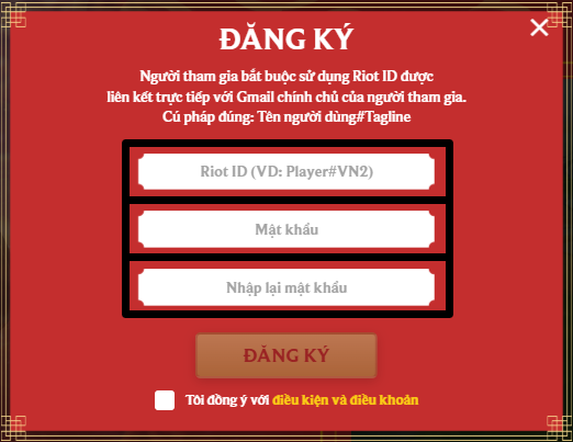 - Mật khẩu dùng cho sự kiện không trùng với mật khẩu Riot Games để đảm bảo an toàn.