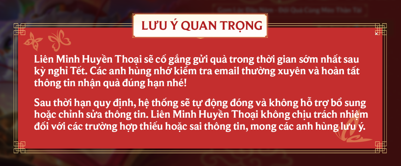 - Đối với quà tặng đã nhận: Bạn vui lòng check mail thường xuyên để để nhận thông tin nhận quà sớm nhất từ BTC.