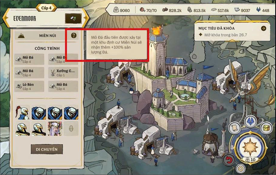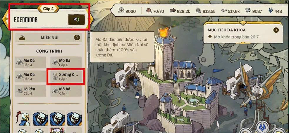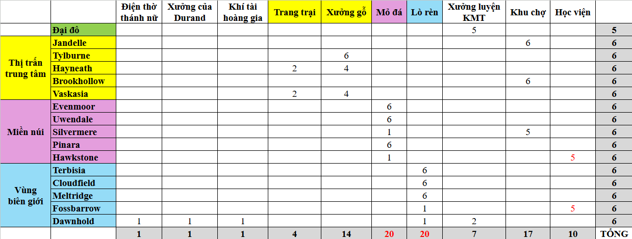Trước khi bắt đầu xây dựng, người chơi cần xác định rõ định hướng phát triển cho từng khu vực, từ đó lựa chọn công trình ưu tiên phù hợp. Việc phân bổ hợp lý giữa Chợ, Mỏ Đá và Lò Rèn tại các vùng như Jandelle, Evenmoor hay Dawnhold sẽ ảnh hưởng trực tiếp đến tốc độ phát triển tổng thể.