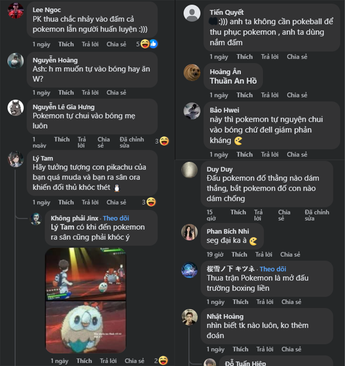 - “Thua Pokémon là Ash chuyển sang chế độ boxing: ‘Giờ tự vào bóng cho gọn hay ăn W cho nhanh?”