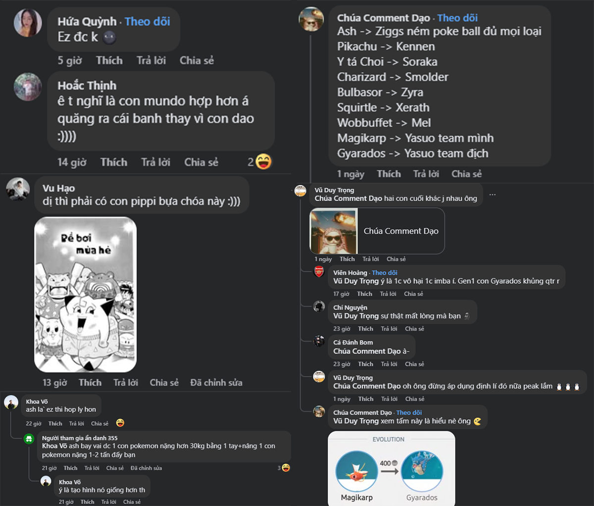 Bên cạnh tạo hình, cộng đồng còn hào hứng đề xuất loạt cặp lai Pokémon – tướng LMHT vừa hợp lore, vừa đậm chất meme: