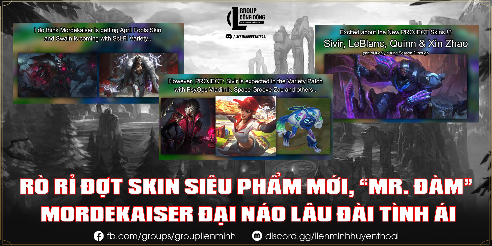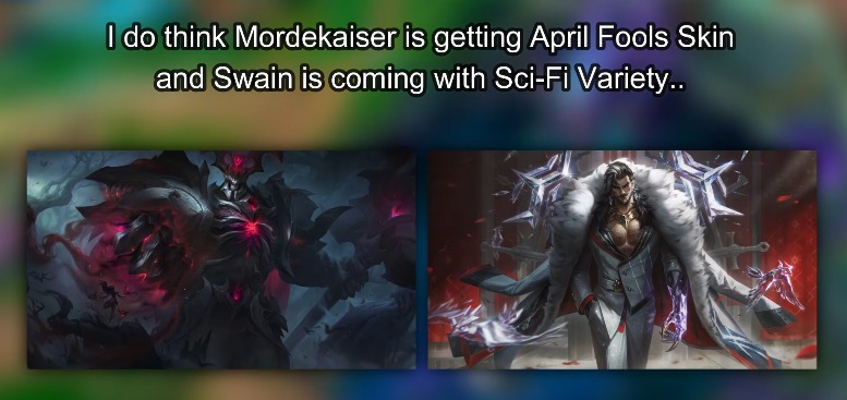 Bên cạnh dòng SIÊU PHẨM, cộng đồng còn đặc biệt chú ý đến tin đồn về một trang phục Hàng Hiệu dành cho Mordekaiser nhân dịp Cá Tháng Tư. Trong khi đó, Swain cũng được cho là sẽ góp mặt trong nhóm skin “đa dạng”, với phong cách sci-fi hiện đại và bí ẩn.
