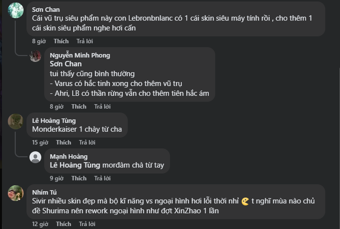 - Kỳ vọng làm mới tướng cũ: Không ít ý kiến đề nghị Riot nên rework ngoại hình hoặc chiêu thức của Sivir, thay vì chỉ ra skin mới.