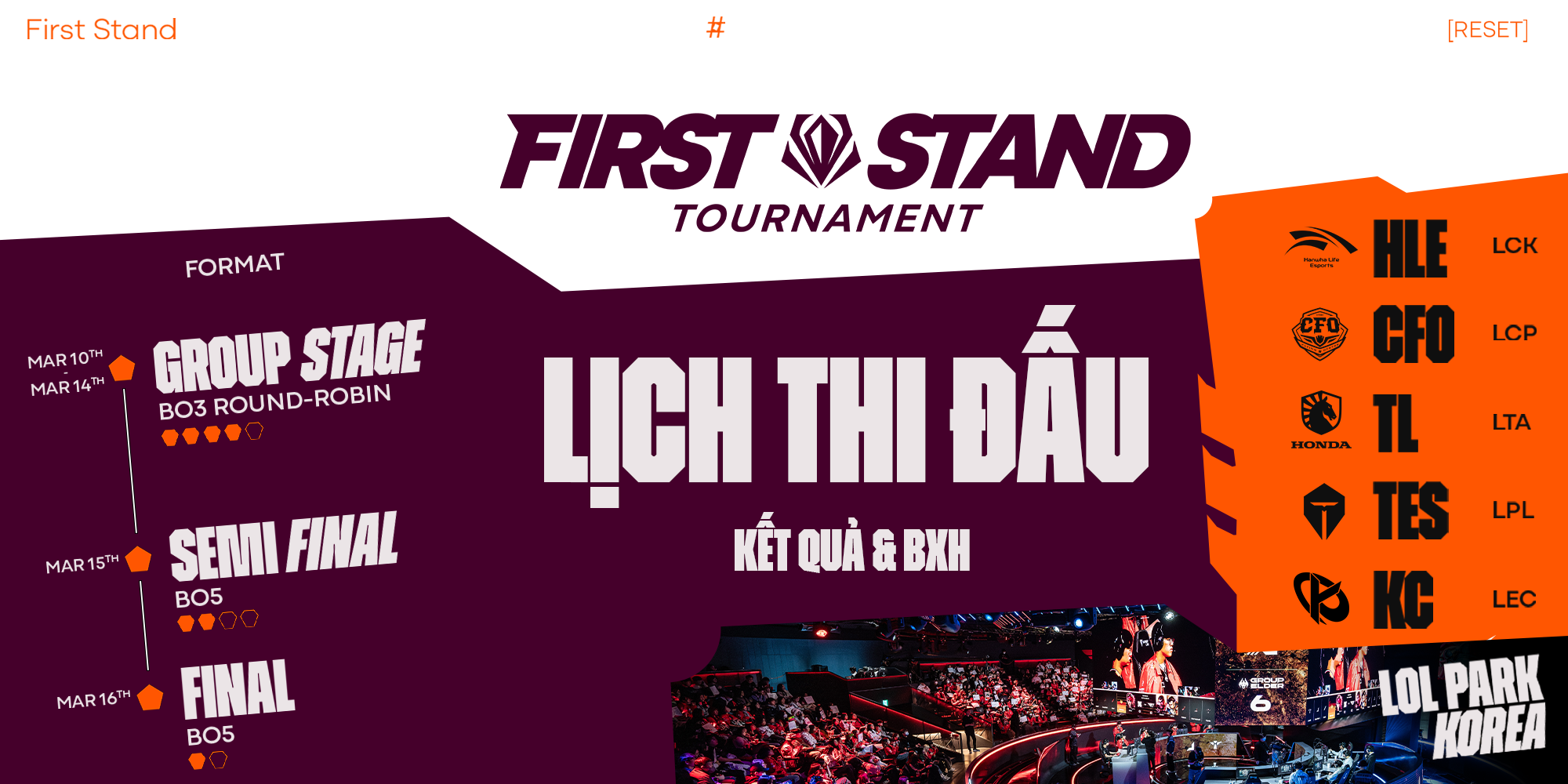 Năm 2025 chứng kiến sự ra đời của First Stand, giải đấu quốc tế Liên Minh Huyền Thoại đầu tiên trong năm và là sự bổ sung quan trọng vào hệ thống giải đấu chuyên nghiệp. Trước đó, MSI và Chung Kết Thế Giới là hai sự kiện quốc tế lớn duy nhất. Việc Riot Games giới thiệu First Stand không chỉ tăng tính liên tục cho mùa giải mà còn mở ra cơ hội thử nghiệm thể thức Hard Fearless Draft đầy mới mẻ.