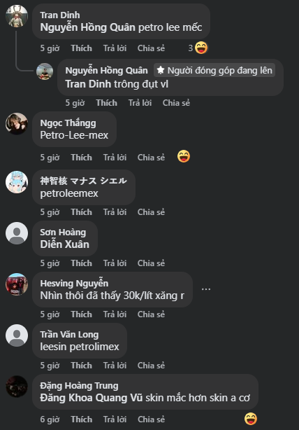 - “Petro-Lee-mex à? Phải gọi là Lee95sin chứ, không phải xăng sinh học đâu nha.”