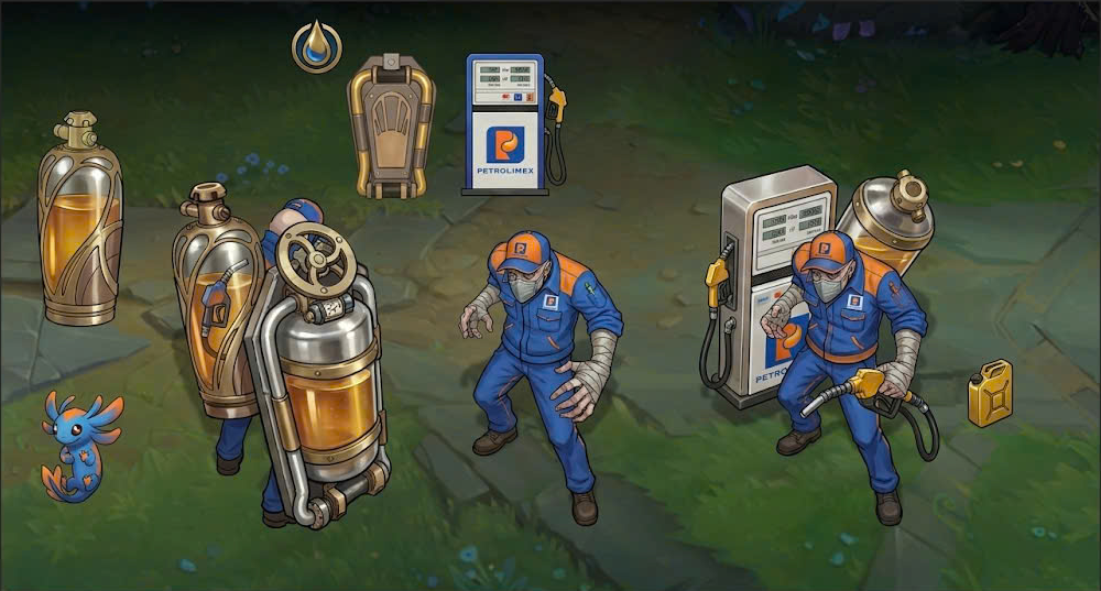 Dù không đến từ Riot Games, loạt skin meme mang tên “Hơi Thở Của Xăng” lại nhanh chóng chiếm trọn sự chú ý nhờ độ “đắt đỏ” đúng nghĩa đen. Giữa thời điểm giá xăng liên tục biến động, người chơi đã sáng tạo nên những cái tên đầy hài hước như Petro-Lee-mex hay Singed Đại Lý Xăng Dầu, khiến cộng đồng vừa cười vừa gật gù vì quá hợp thời.