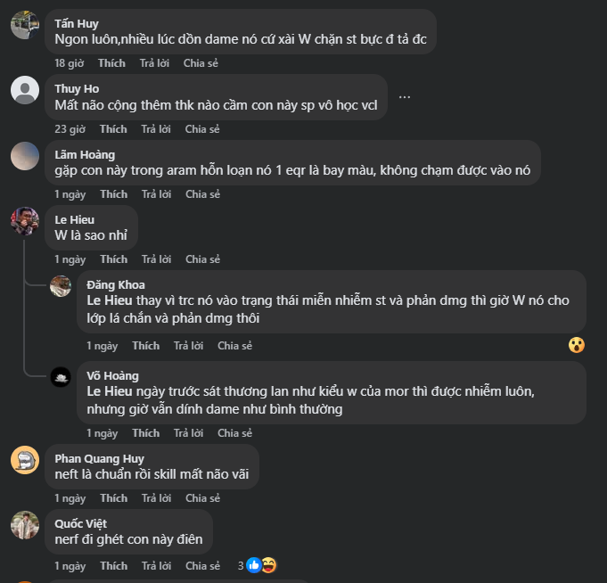 - “Tướng lỗi, skill lỗi, nerf đi.”