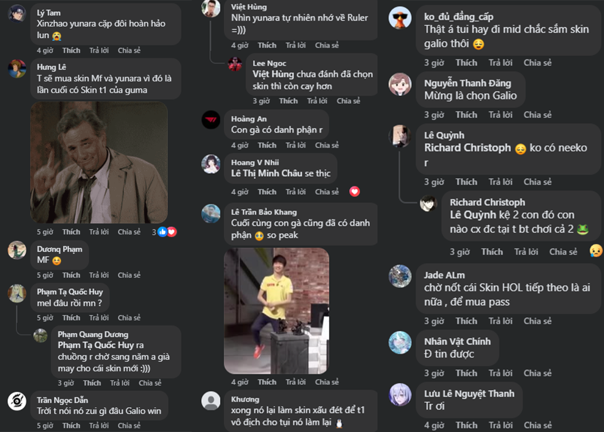 - "Xong nó lại làm skin xấu đét để t1 vô địch cho tụi nó làm lại."
