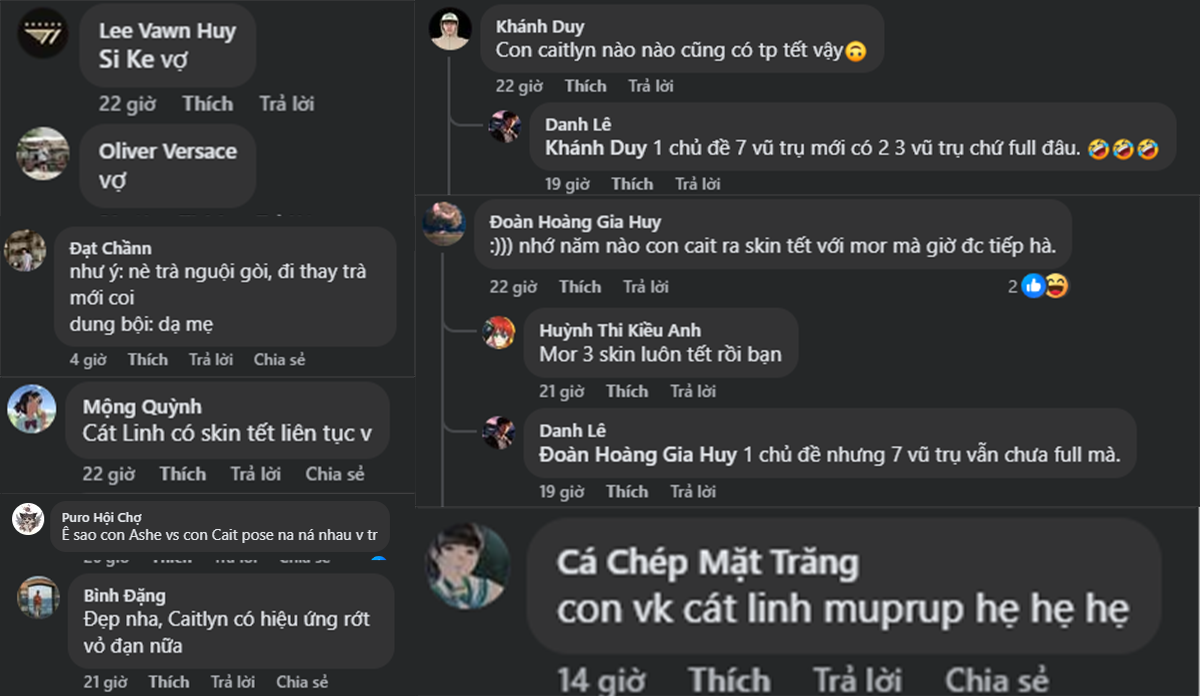 - “Caitlyn năm nào cũng có skin Tết hả?”