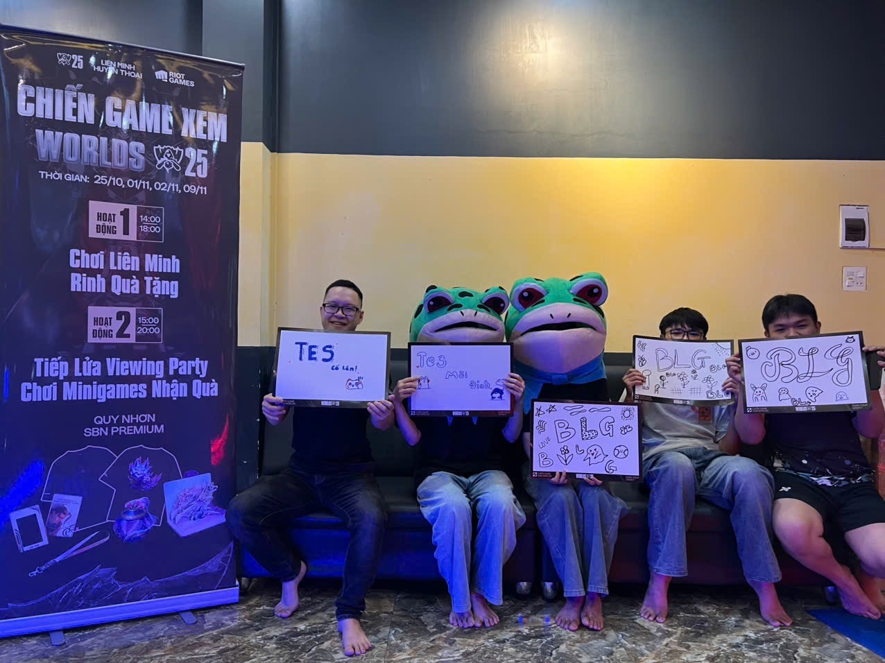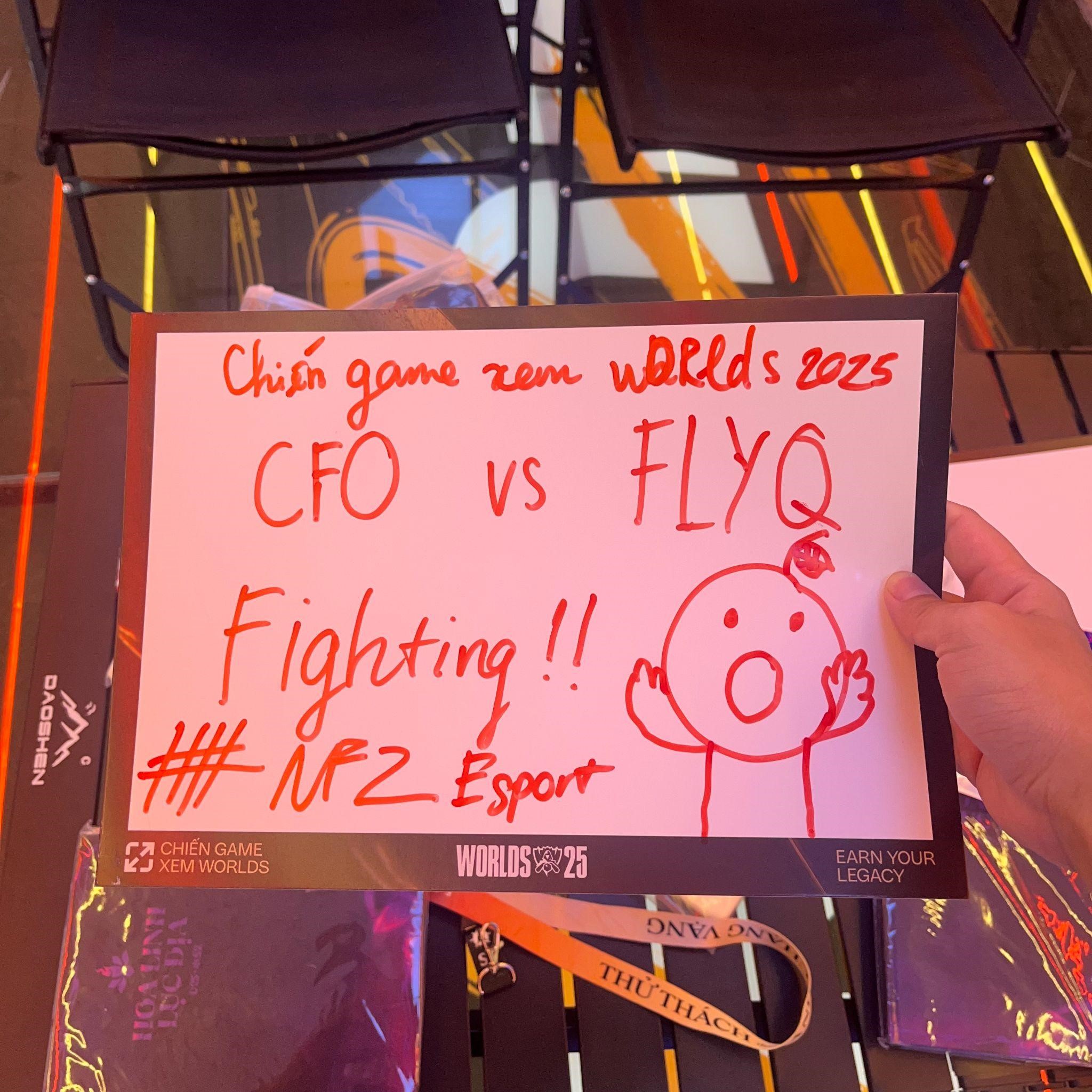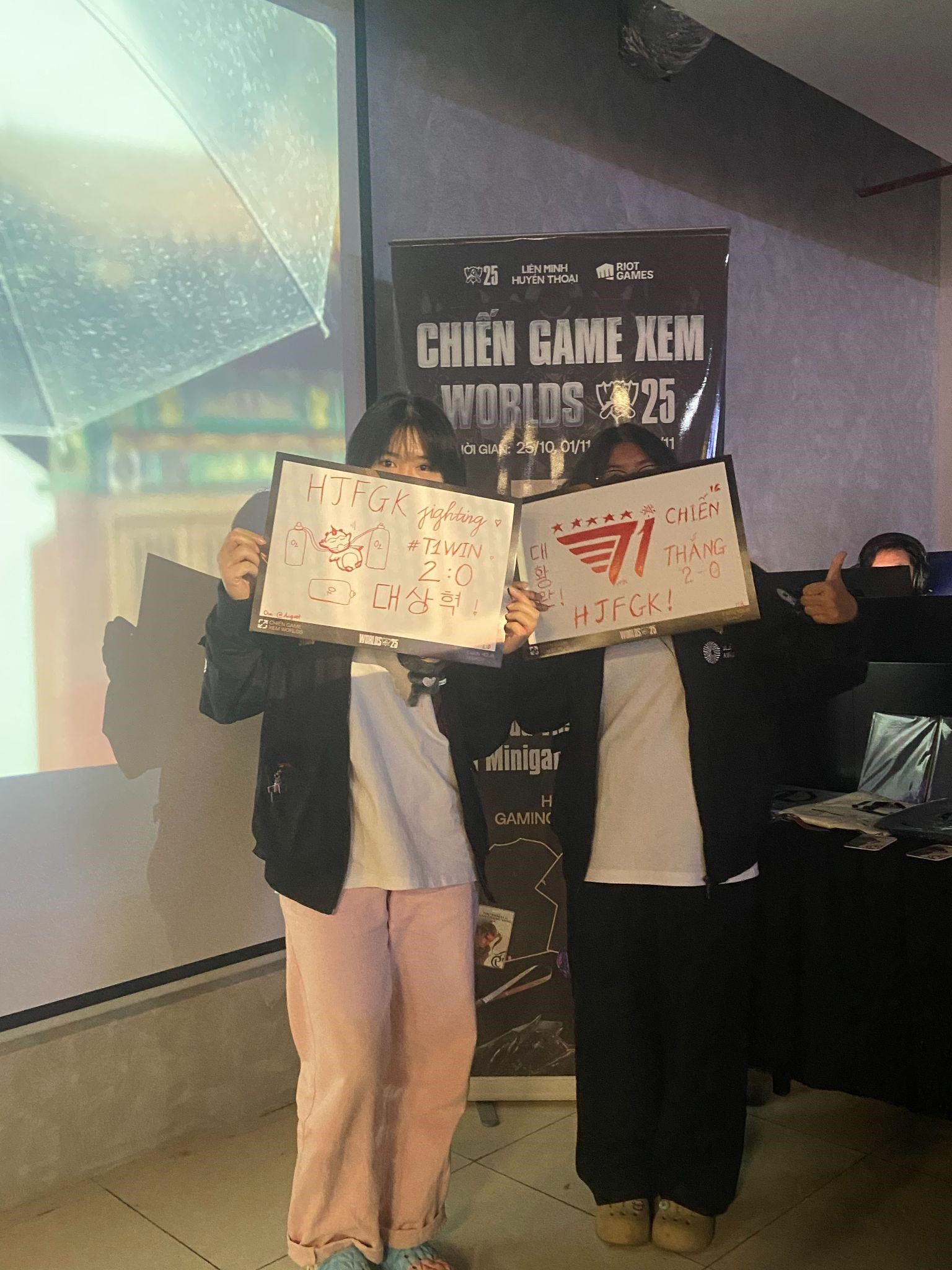 Không chỉ “chiến game”, các game thủ còn cùng nhau tiếp lửa cho đội tuyển yêu thích! Cả hội trường bùng nổ với những tấm bảng cổ vũ, tiếng hô vang và vô số khoảnh khắc check-in kèm hashtag #Worlds2025 #LMHTVN tràn ngập khắp các nhóm cộng đồng Liên Minh Huyền Thoại Việt Nam.