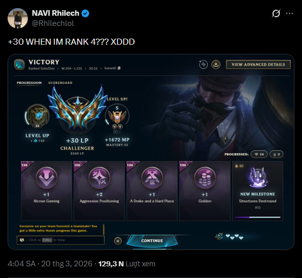 Giờ đây, “trần hệ thống” đã không còn tồn tại. Giới hạn duy nhất còn lại chính là kỹ năng, sự ổn định và thời gian đầu tư của mỗi người chơi. Câu hỏi lớn nhất lúc này là: Ai sẽ trở thành người đầu tiên chạm mốc 4000 LP?
