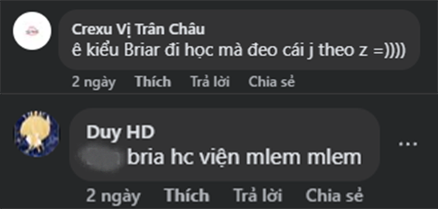 - “Ê kiểu Briar đi học mà đeo cái gì vậy =)))”