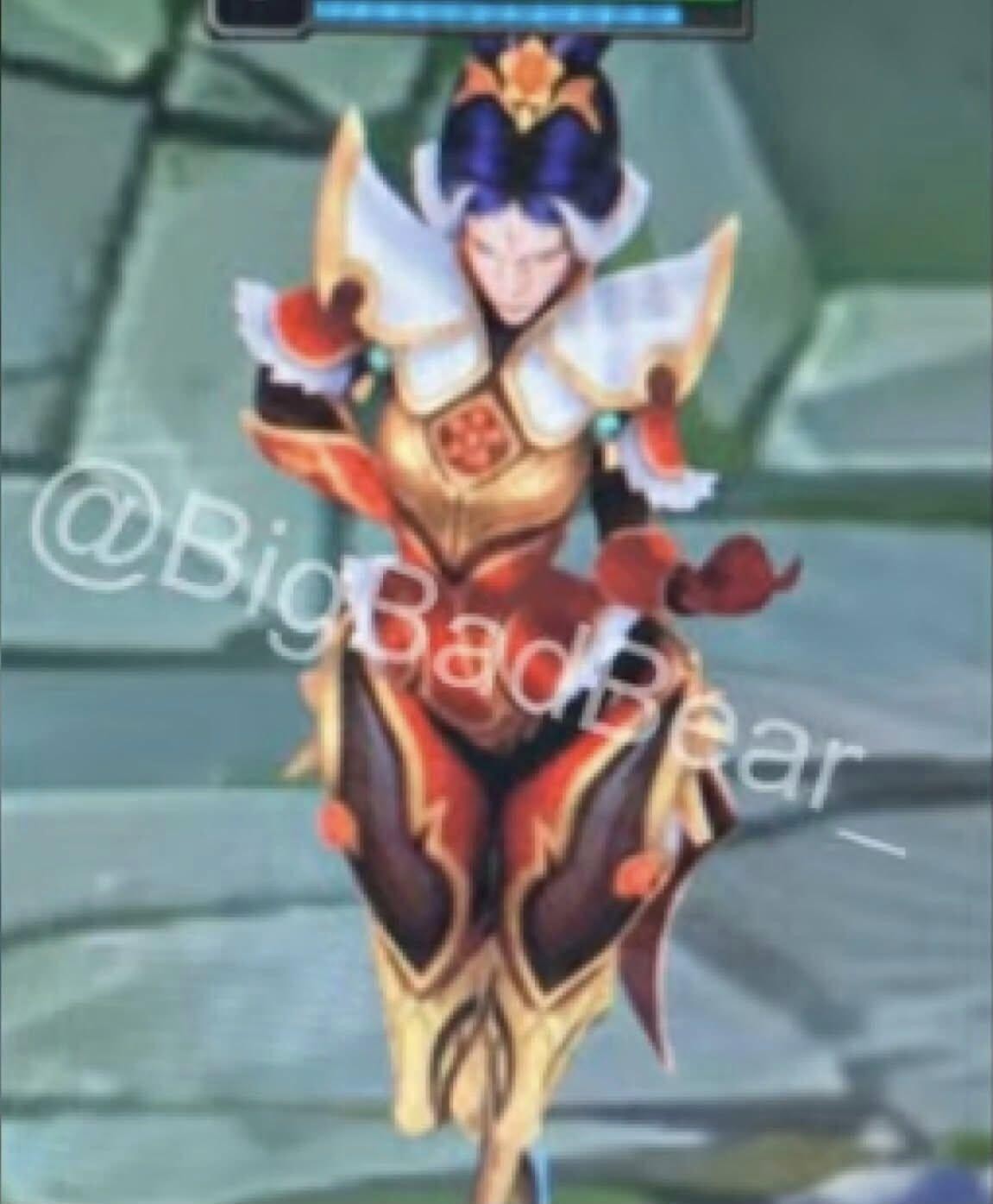 Trong những hình ảnh leak hiện tại, Camille Pháo Hoa vẫn giữ nguyên thần thái sang trọng, mạnh mẽ vốn đã làm nên thương hiệu của vị tướng này, nhưng được khoác lên tông màu đỏ – vàng rực rỡ, đậm chất lễ hội đầu năm.