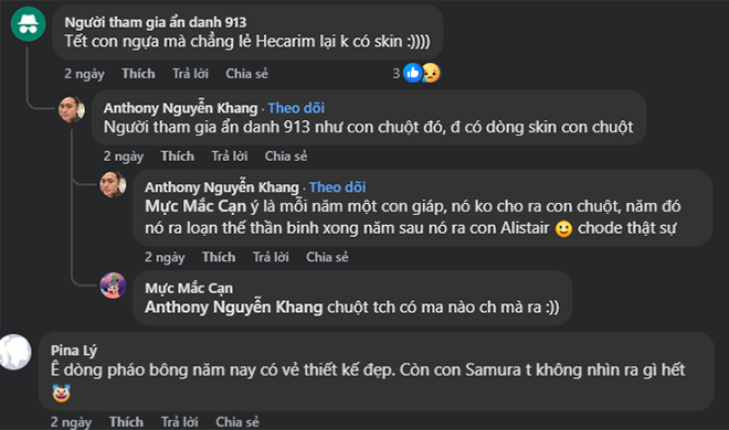 - “Tết con ngựa mà Hecarim không có skin thì hơi phí 😅.”