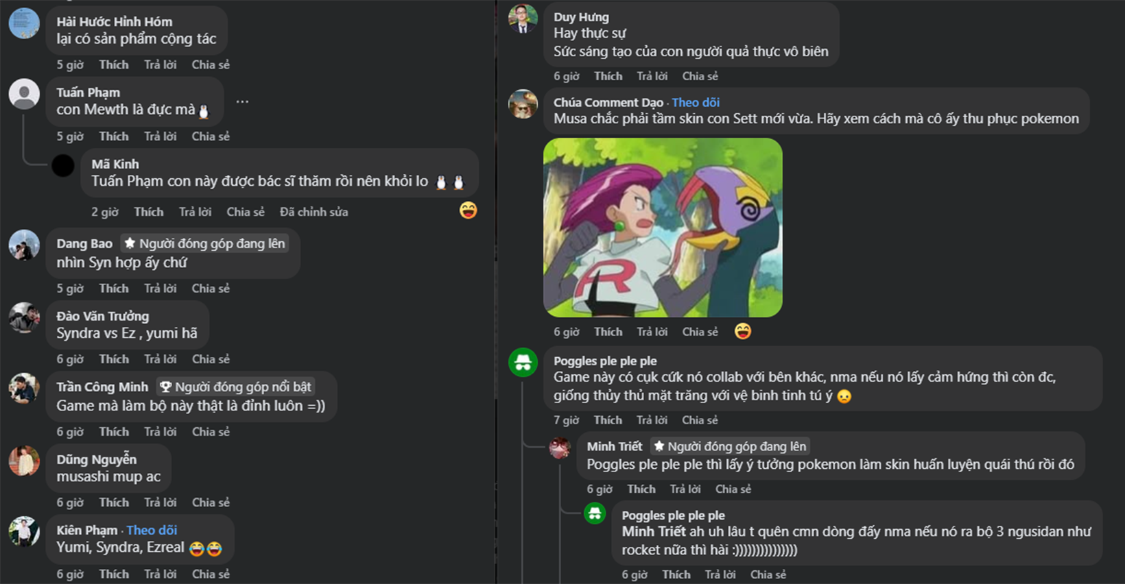 Không ít người còn mạnh dạn tưởng tượng về một “đội hình trong mơ”: Ezreal trong vai James, Syndra hóa Jessie và Yuumi trở thành Meowth sẵn sàng “bay nửa bản đồ” trước cú R của Poppy.