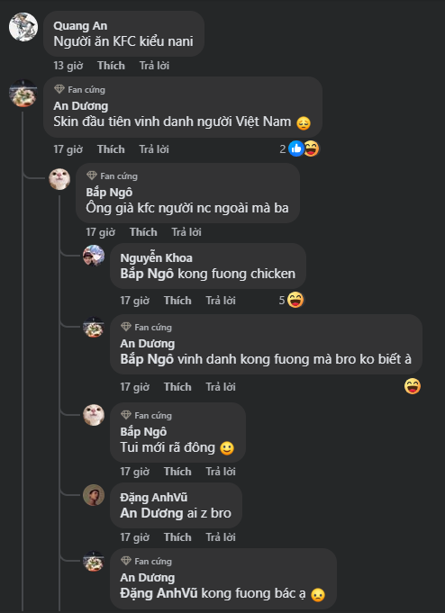 - "Skin đầu tiên vinh danh người Việt Nam vì niềm đam mê gà rán chăng?"