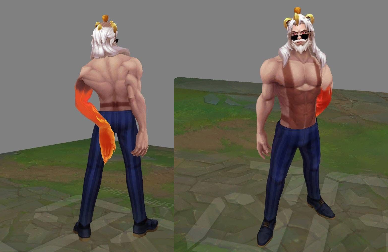 Ngoại hình: Thay vì bộ áo choàng đen huyền bí, Swain khoác vest trắng tinh khôi, đeo kính và để râu trắng, trông chẳng khác gì Đại tá Sanders của KFC. Một số fan còn đùa rằng đây là “Đô đốc Hải quân” phiên bản mê gà rán.