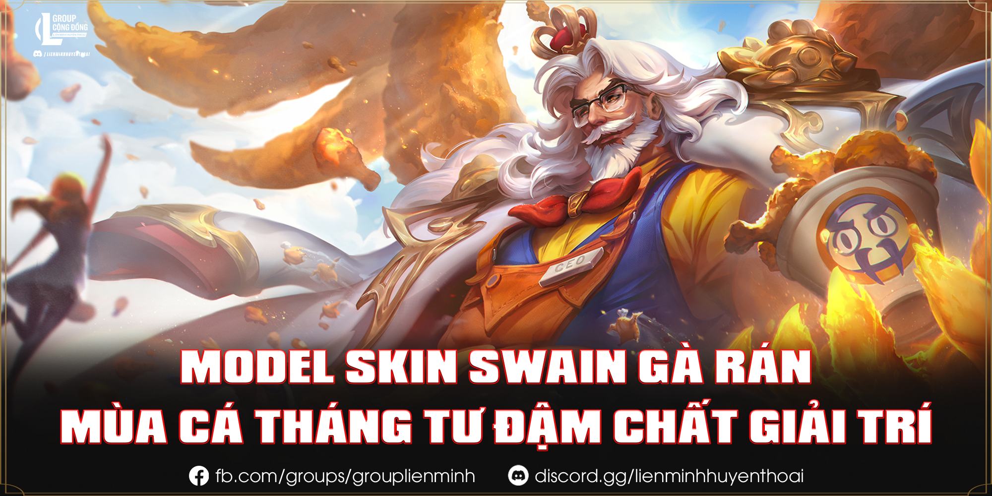 Sau loạt skin nghiêm túc, cộng đồng Liên Minh Huyền Thoại lại chao đảo trước model và art cực kỳ “ngon mắt” của Swain Gà Rán (KFC Swain). Nguyên Soái của Noxus giờ không đi thu thập bí mật nữa mà chuyển sang thu thập dầu chiên, khiến cả Runeterra như ngửi thấy mùi cánh giòn rụm thơm phức!