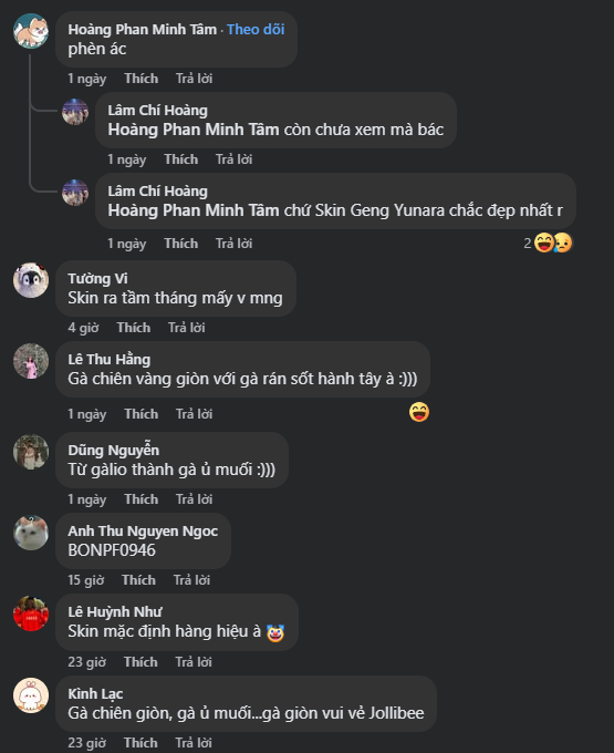 - "Gà chiên giòn, gà ủ muối... gà giòn vui vẻ Jollibee"