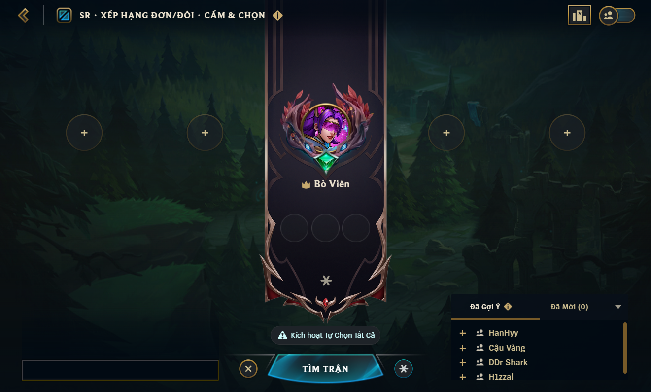- Muốn vào trận ngay không cần cấm/chọn phức tạp