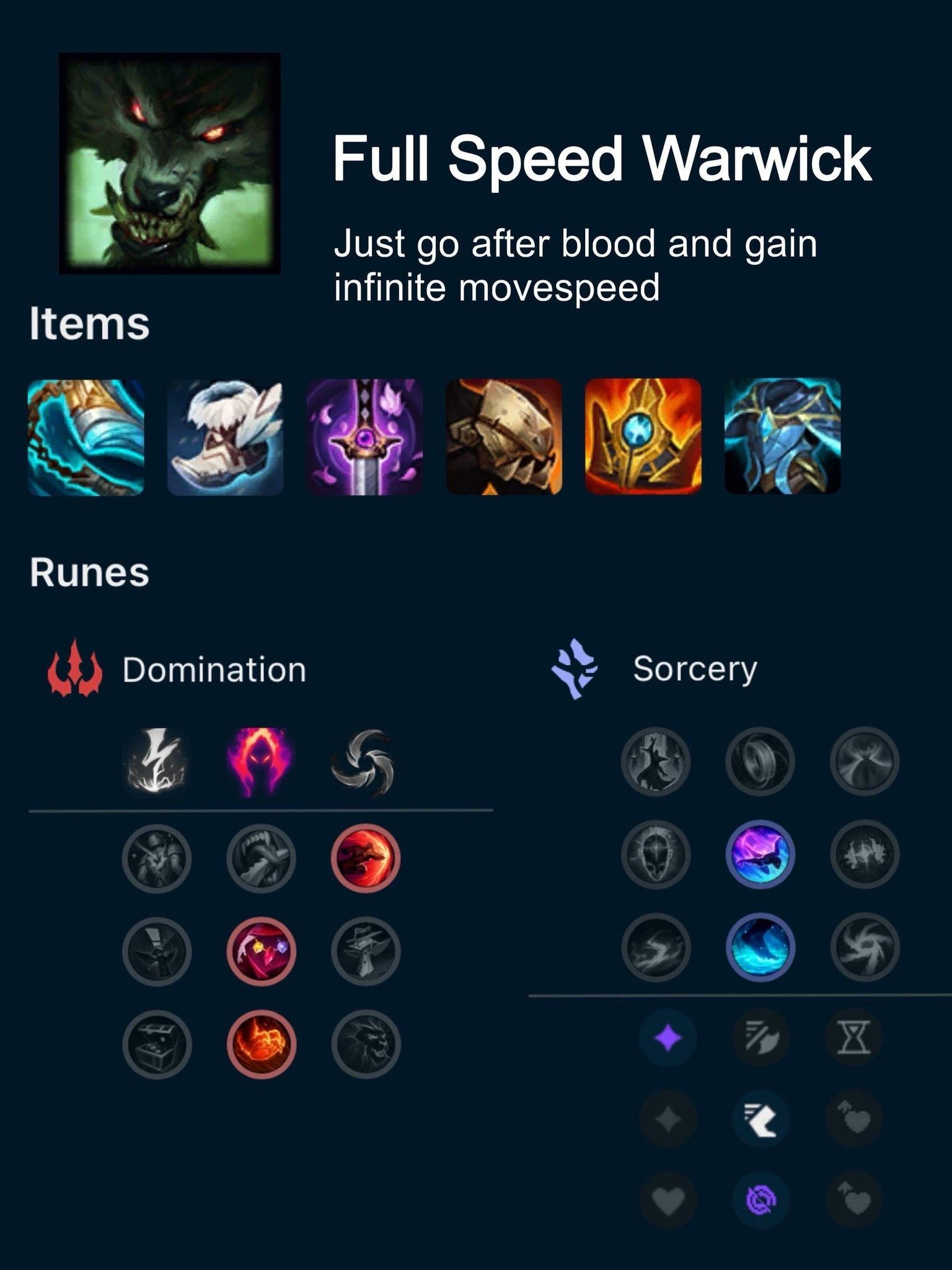 - Bên cạnh đó, Warwick sở hữu khả năng hồi máu khủng từ nội tại và chiêu Q, giúp hắn cực trâu và duy trì giao tranh lâu dài.