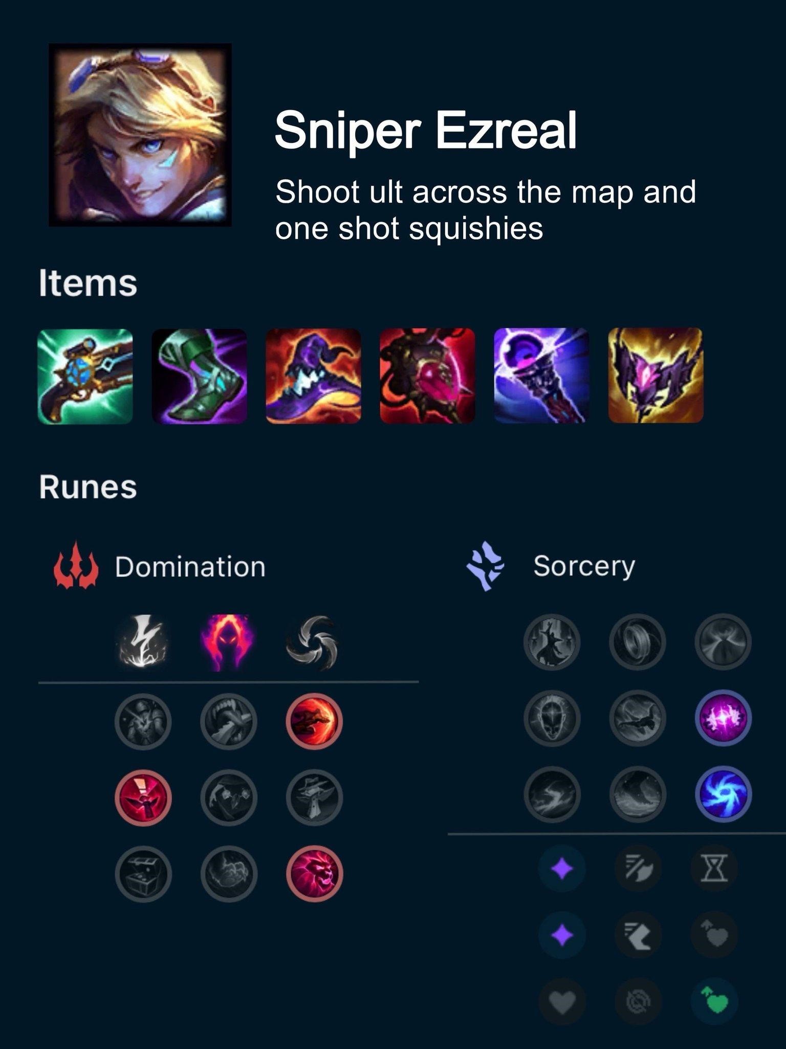 Ezreal trong ARURF có khả năng oneshot đối phương cực hiệu quả nhờ chiêu cuối R (Trueshot Barrage), đặc biệt ở giai đoạn đầu và giữa trận khi sát thương vô cùng khủng. Tuy nhiên, về late game, sức mạnh của kỹ năng này giảm đáng kể, vì vậy cần tận dụng tối đa lợi thế ở giai đoạn sớm.