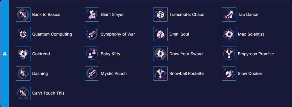 | Chuyển Đổi Hỗn Loạn (Transmute: Chaos) | Nhận ngay 2 Nâng Cấp ngẫu nhiên – vui là chính, mạnh là phụ. Một lựa chọn thú vị cho Jayce, Elise, Zilean. | |