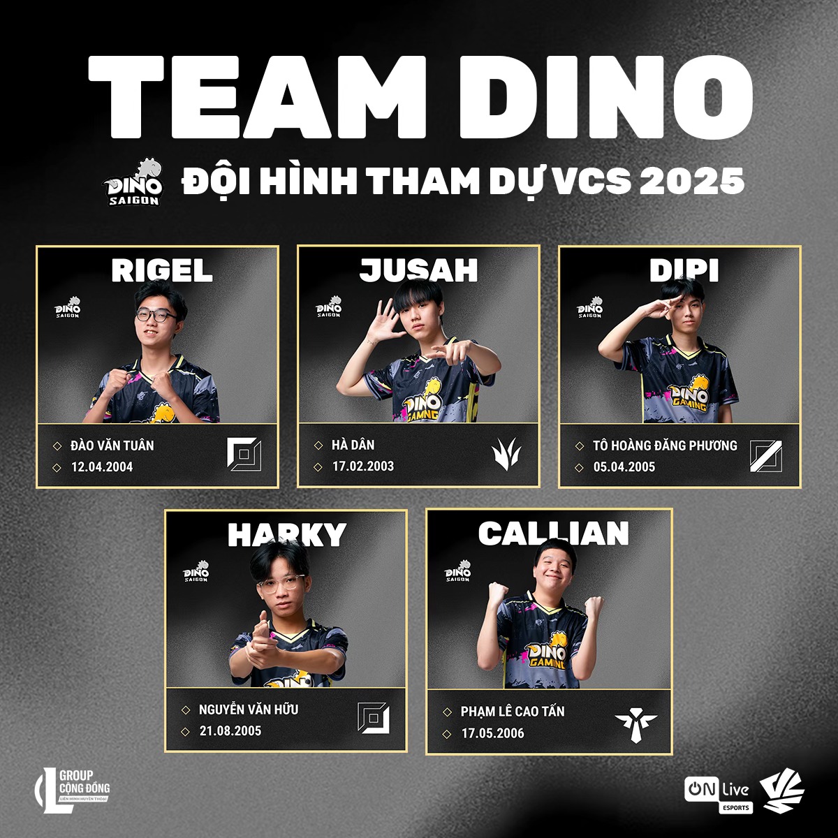 - Saigon Dino (SD): Kẻ săn mồi của thành phố: Saigon Dino là một ẩn số thú vị của giải đấu. Với đội hình trẻ trung và khát khao chiến thắng, SD hứa hẹn sẽ mang đến những bất ngờ khó lường. Liệu "kẻ săn mồi" SD có thể tạo nên những cú "game" chấn động và gieo rắc nỗi kinh hoàng cho các đội tuyển khác?