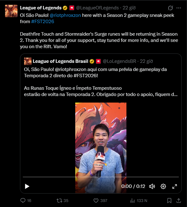 Ngay sau khi First Stand 2026 khép lại, Riot Games đã khiến cộng đồng LMHT “dậy sóng” với một thông báo đầy bất ngờ. Không phải bản cập nhật cân bằng, cũng không phải tướng mới, mà là sự trở lại của hai viên ngọc huyền thoại: Xung Kích Bão Tố và Lửa Tử Thần.