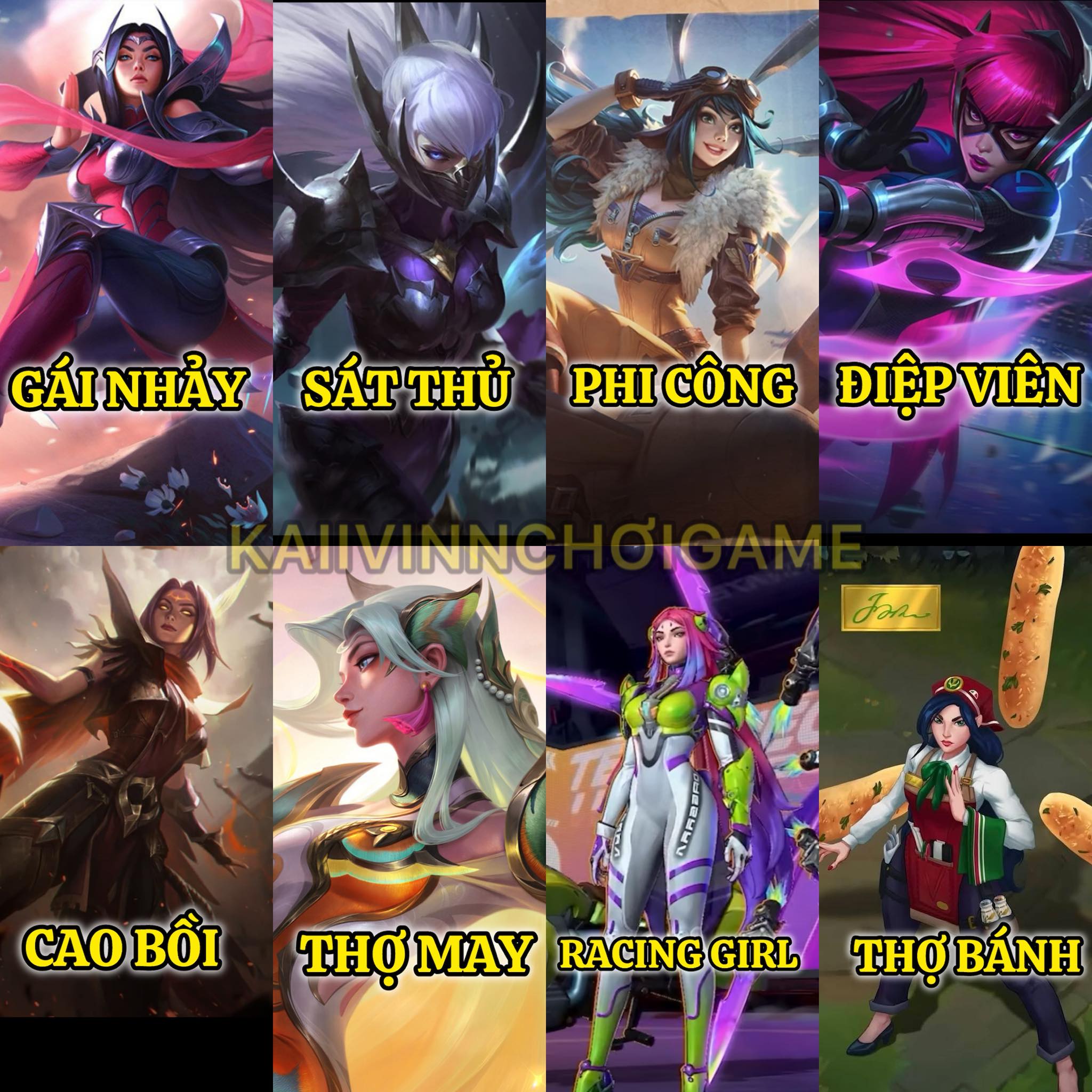 - Racing girl (Tốc Chiến): Làm thợ may chán quá nên nhập team đua xe. Có thuyết âm mưu rằng "Làm girl phố bị mấy chú áo vàng móc mất cái xe nên giờ bán bánh kiếm xe mới".