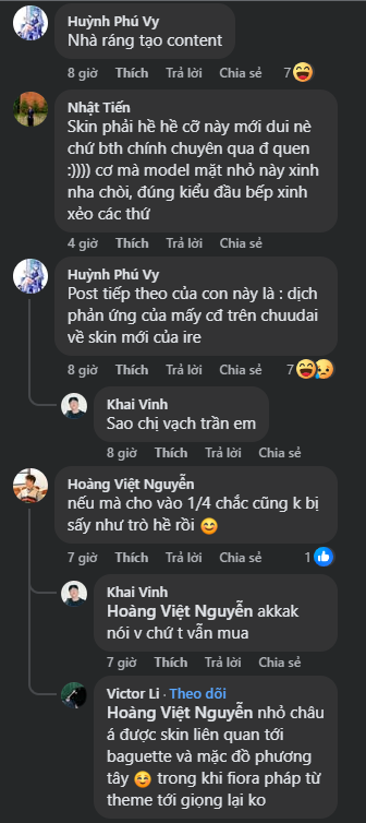 - Thậm chí có bình luận như: “Skin nhìn không biết diễn tả sao luôn, tui nghỉ game mất!”