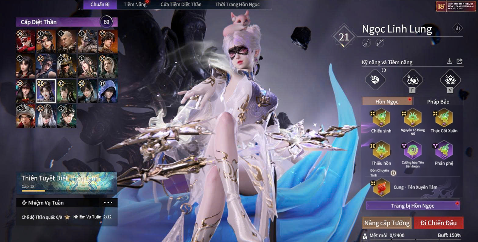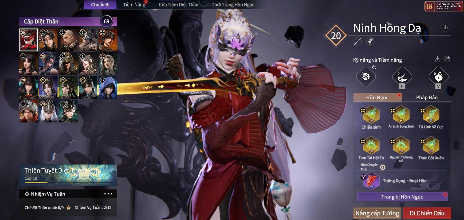 Trang bị ngọc: Chiếu Sinh (độc), Tứ Tượng - Tích Độc (độc), Nguyên Tố Bùng Nổ (độc), Thực Cốt Xuân (độc), Pháo Liên Châu (Tím) (băng), Gió Gào (Tím) (băng).