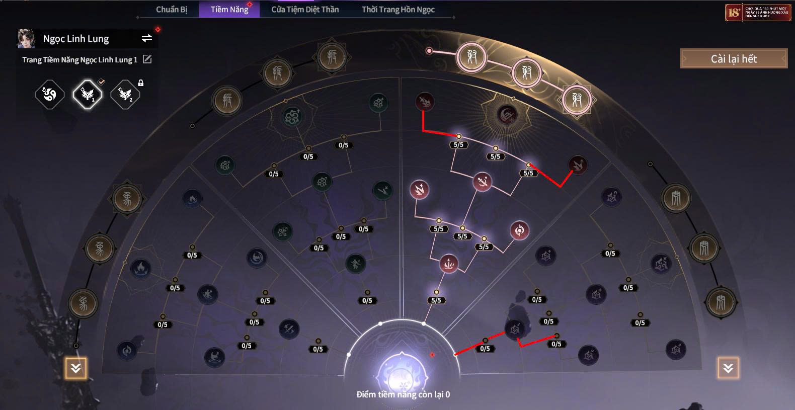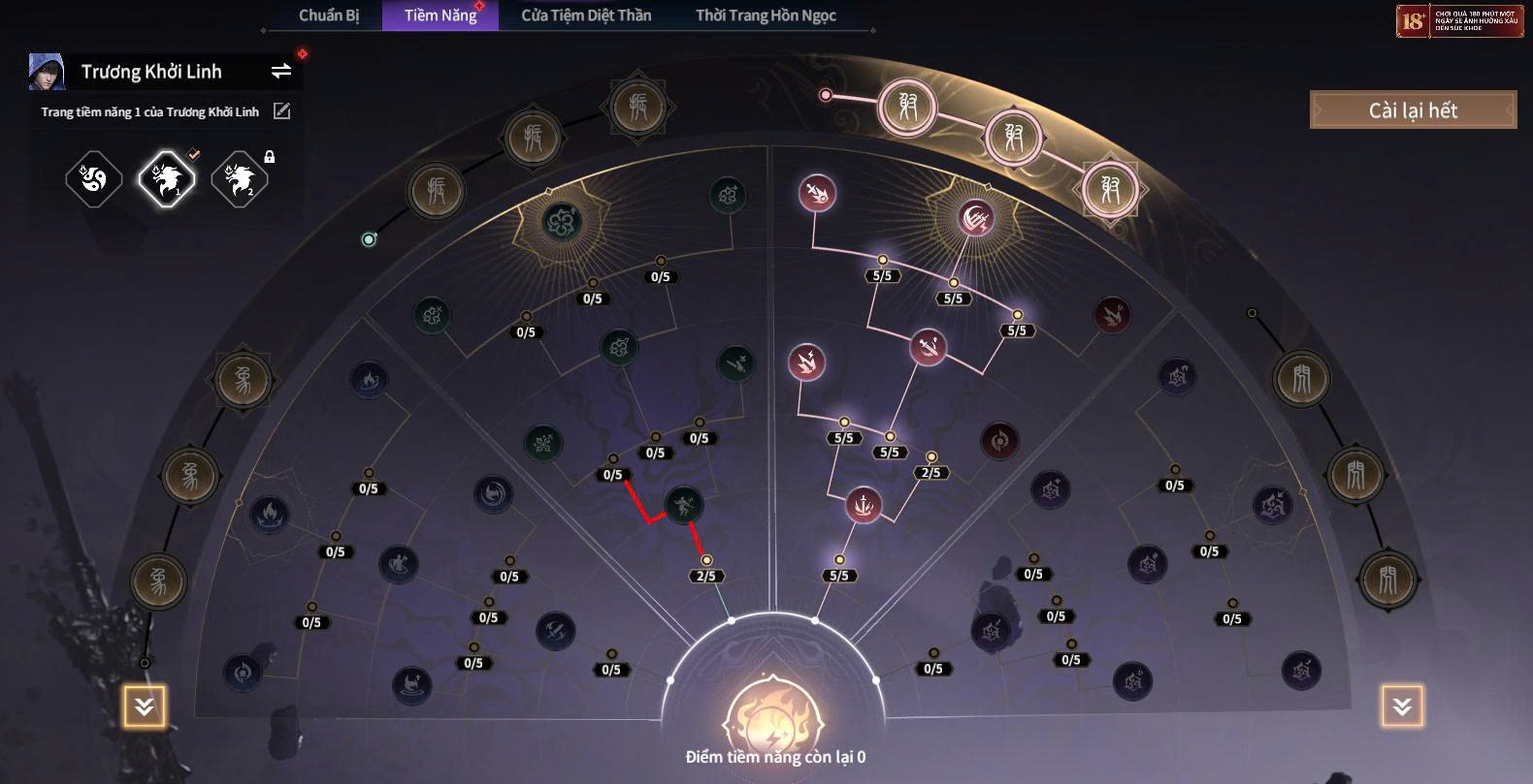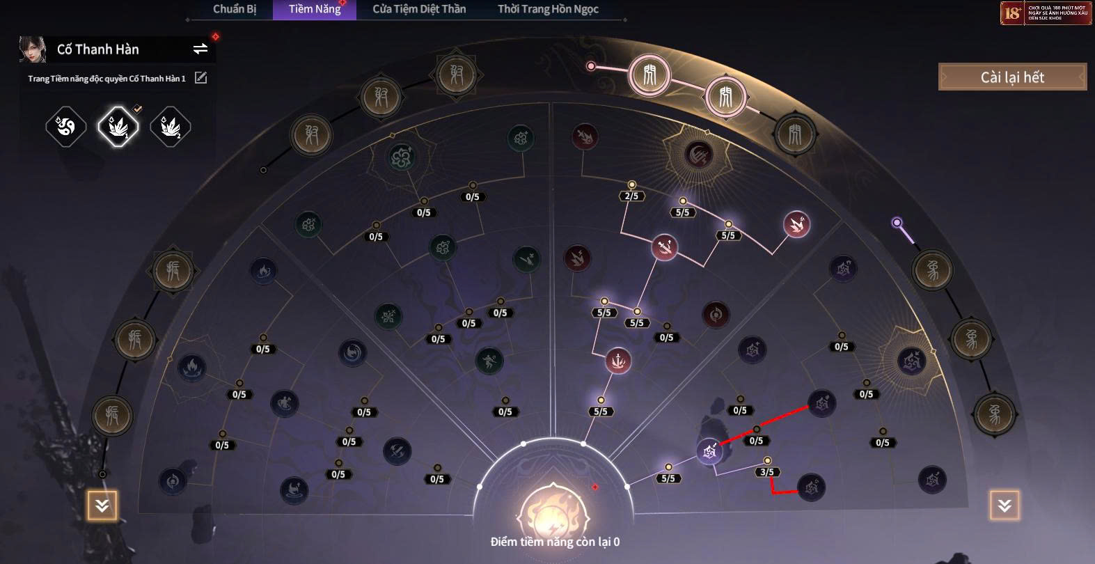 - Nhánh hỗ trợ: Tăng khả năng buff giáp, hồi máu, giảm hồi chiêu kỹ năng khống chế và các hiệu ứng giúp team sống sót lâu hơn trong giao tranh dài.