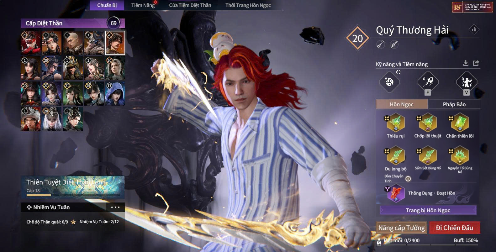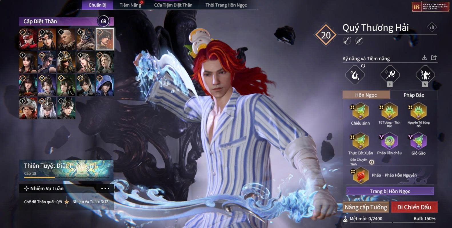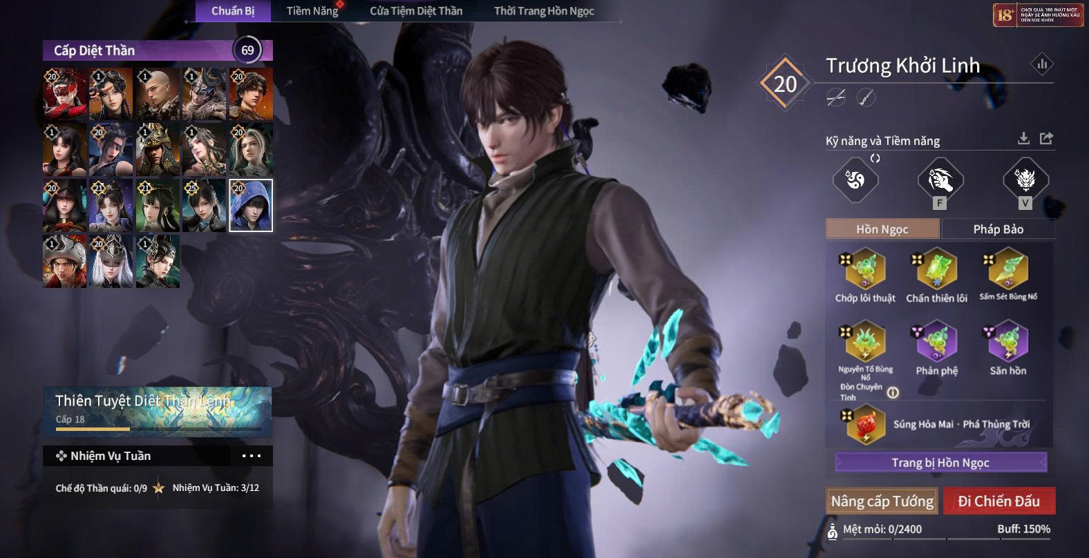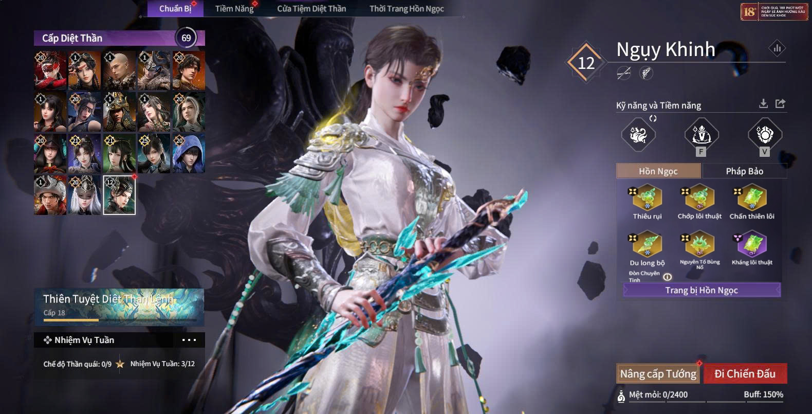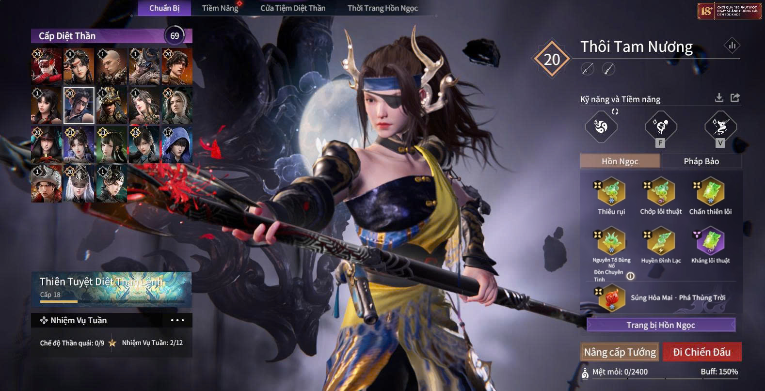 Trang bị ngọc: Nguyên Tố Liên Sinh (sét), Linh Liên Nở Rộ (sét), Phong Lôi Quyết (sét), Tứ Tượng - Tích Lôi (sét), Huyền Đình Lạc (sét), Tứ Tượng - Tật Ngưng (Tím) (sét).