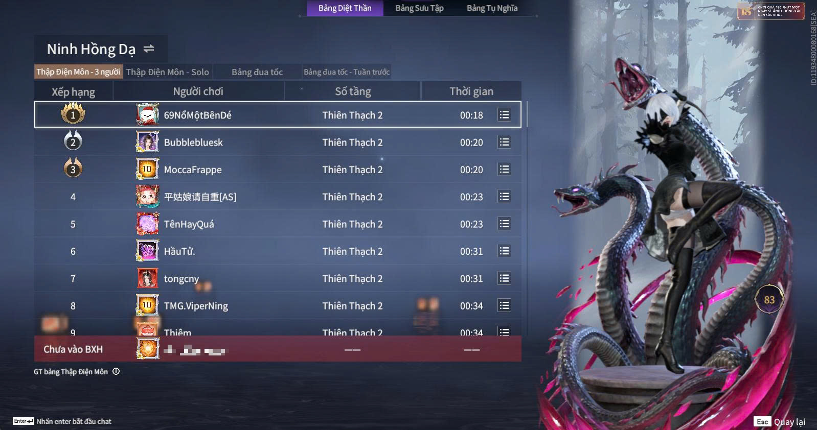 II. HƯỚNG DẪN LẤY BẢNG NGỌC TỪ TOP DIỆT THẦN