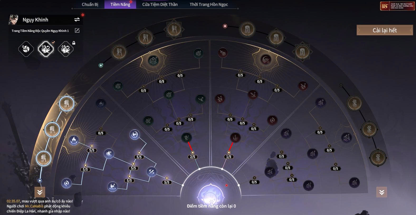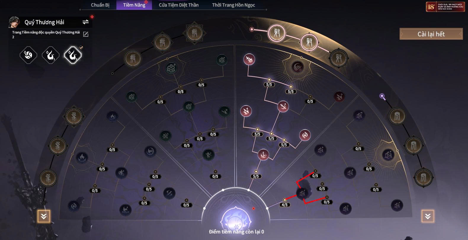 - Nhánh sinh tồn: Tập trung máu %, giảm sát thương khi thấp máu, hồi giáp theo thời gian hoặc khi hạ quái.