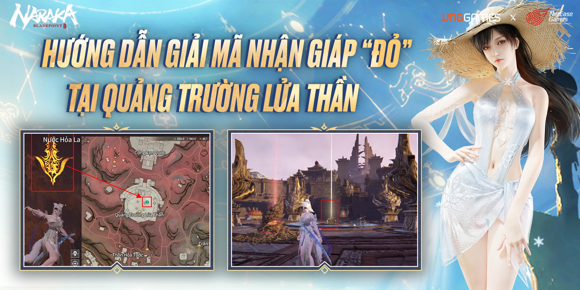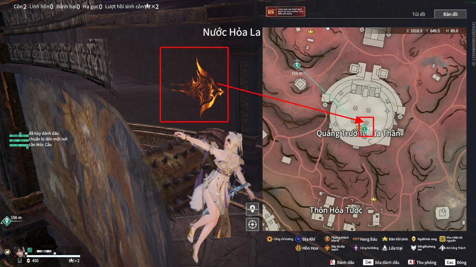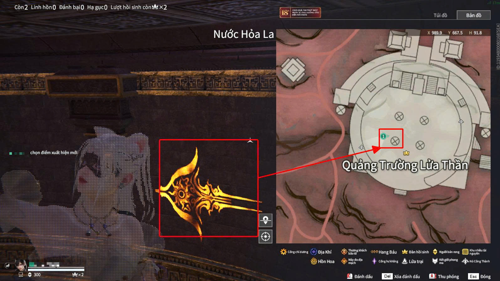 Tại khu vực Quảng Trường Lửa Thần (vị trí vòng tròn trung tâm với chuông ở giữa và các tượng chim xung quanh), người chơi cần: