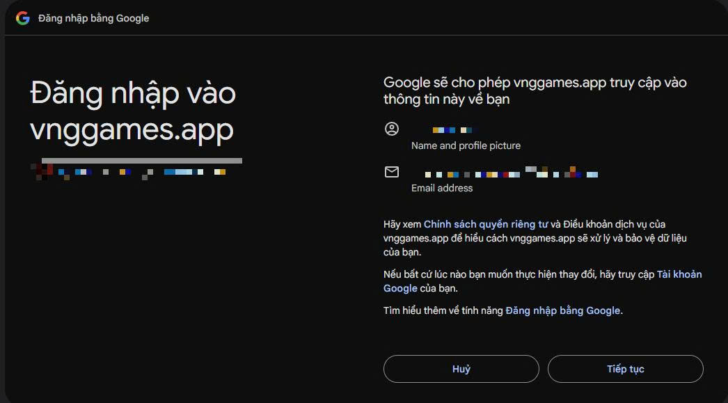 - Liên kết Facebook: Click icon FB > cấp quyền > đăng nhập ngay.