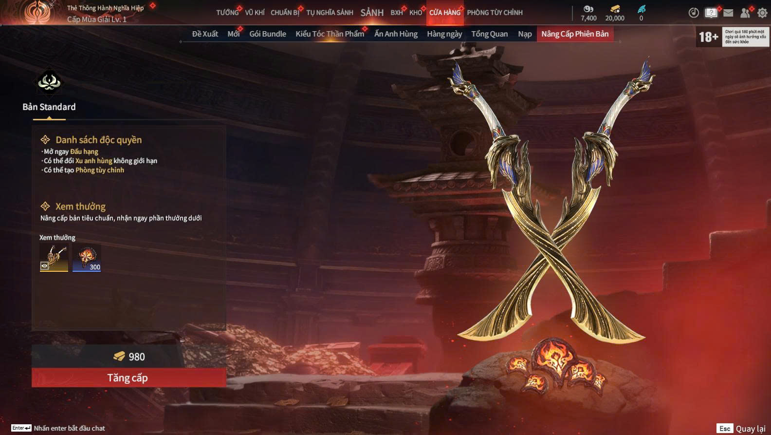 - Chế độ chơi: Đấu Hạng, Thí Luyện Vô Hạn, Thiên Nhân Chiến, Đại Hội Luận Võ,...
