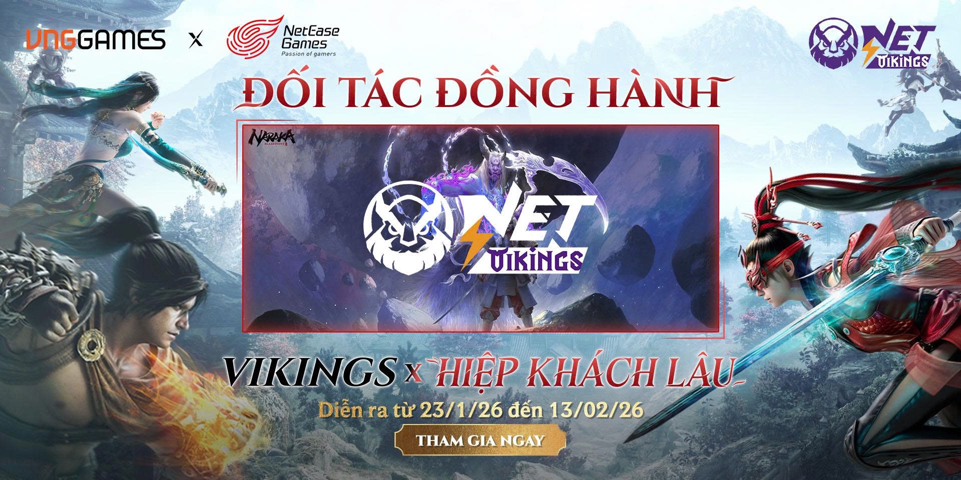 Trong thời gian từ 23/01/2026 đến 13/02/2026, người chơi chỉ cần đến Net Vikings, đăng nhập và trải nghiệm NARAKA: Bladepoint để tích lũy thời gian chơi (playing time). Thời gian trải nghiệm càng nhiều, cơ hội nhận quà giá trị càng lớn.