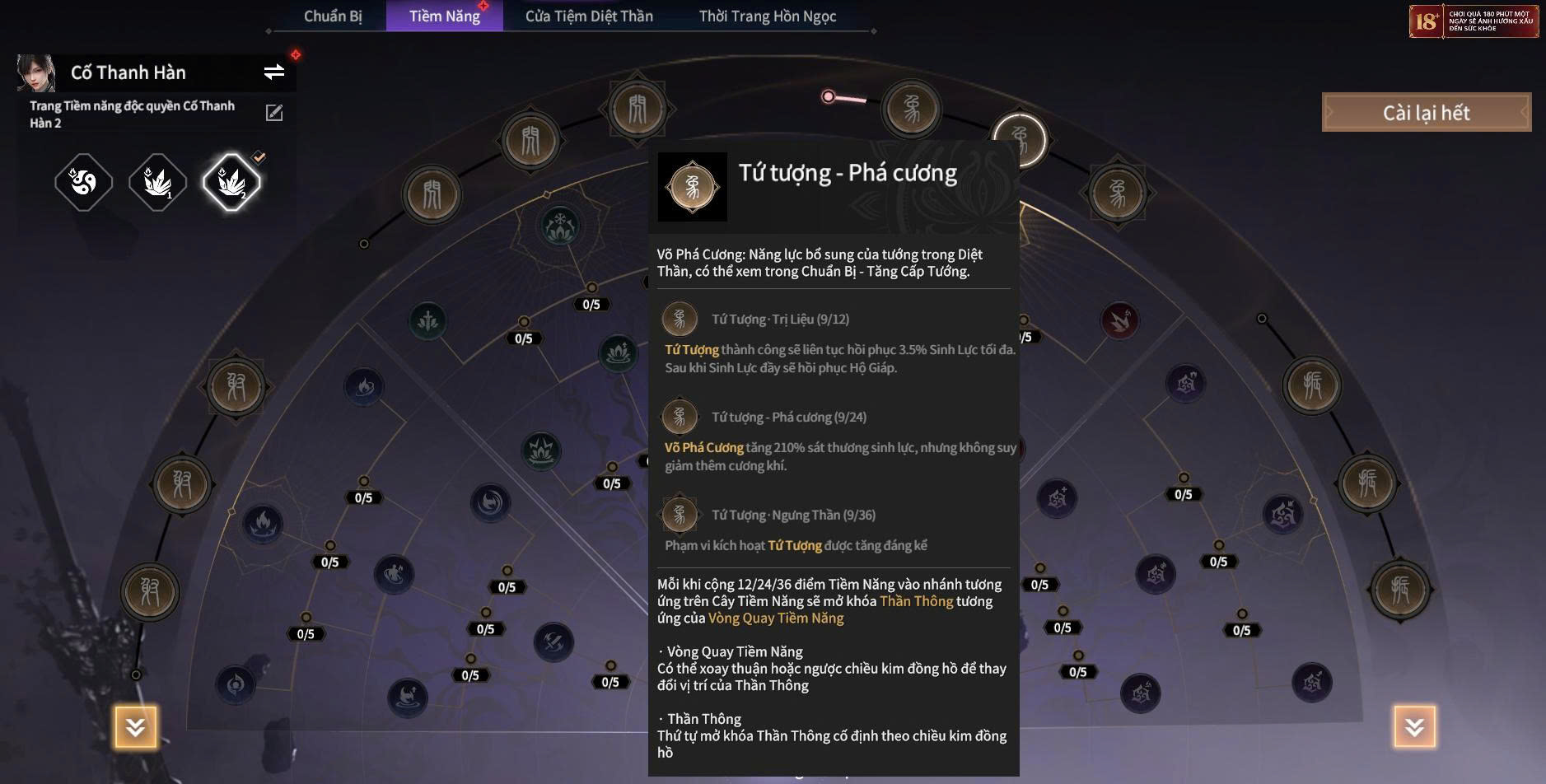 Hệ thống Tứ Tượng trong Diệt Thần đóng vai trò như một bảng “thiên phú”, định hình trực tiếp lối chơi PvE của bạn, giúp cùng một tướng nhưng build khác nhau sẽ cho cảm giác hoàn toàn khác.