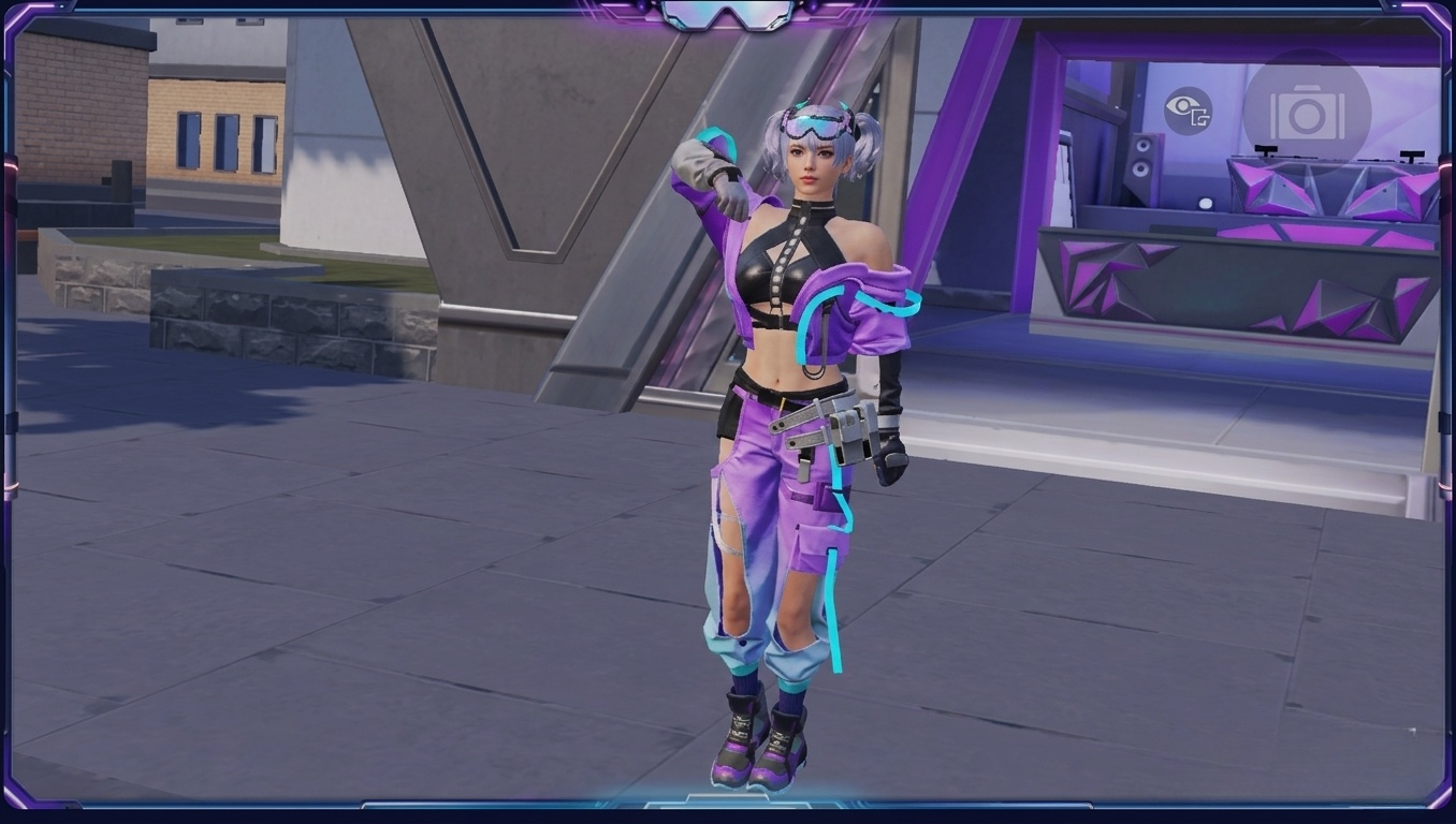 Vẻ ngoài & Cơ chế: Lấy cảm hứng từ tương lai với phong cách tối giản, bộ trang phục được trang bị các dải đèn LED Neon chạy dọc thân, tạo hiệu ứng hiện đại và mượt mắt. Thiết kế gọn gàng giúp nhân vật giữ được độ thanh thoát, không gây cản trở tầm nhìn trong các tình huống di chuyển, check-in hoặc giao tranh.