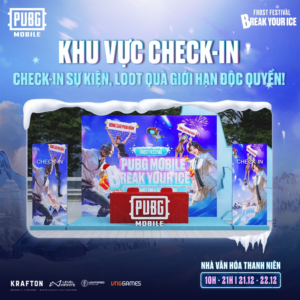 🔥 Đặc biệt, Top 100 Đồng Bo check-in sớm nhất sẽ nhận được combo quà Break Your Ice - Blindbox đầu tiên của PUBG MOBILE cùng nhiều phần quà xịn sò khác. Rủ squad ghé event săn quà ngay!