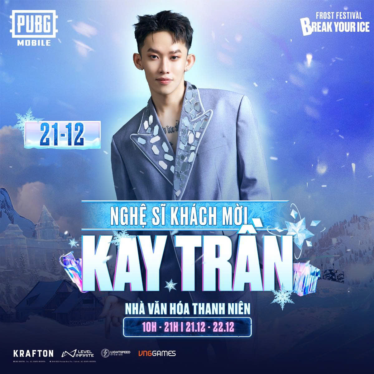 Kay Trần là khách mời đầu tiên xuất hiện tại sự kiện Frost Festival 2024 của PUBG MOBILE, "lên mã" những màn trình diễn cực cháy tại ngày 1 của sự kiện - 21/12! Hội Đồng Bo và các Bông xinh lên kèo ngay!