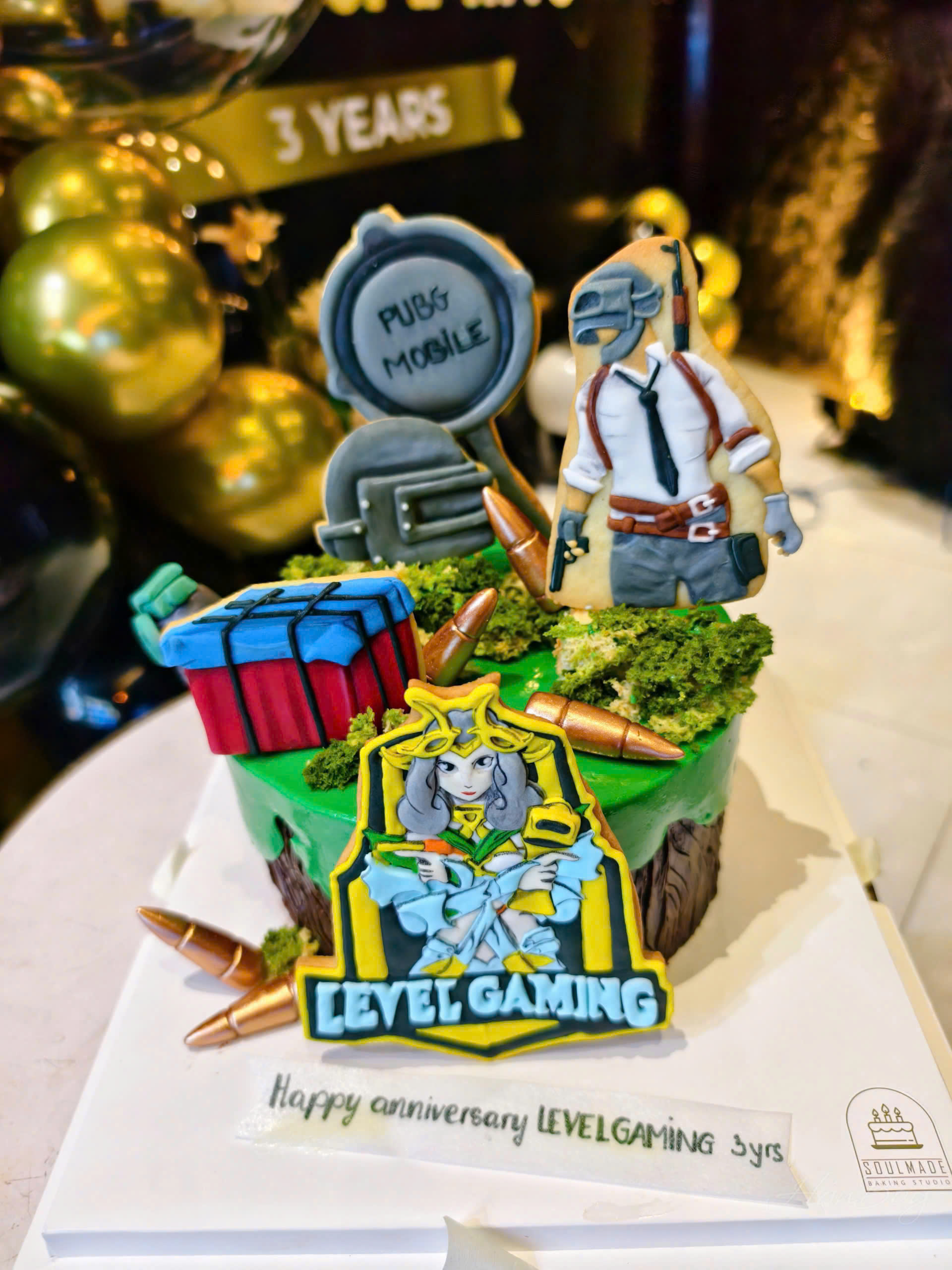 Để đánh dấu cột mốc quan trọng này, Clan Level Gaming đã tổ chức một buổi tiệc ấm cúng và đầy ý nghĩa. Tâm điểm của buổi lễ là chiếc bánh kem "cực chất", được trang trí với biểu tượng đặc trưng của PUBG Mobile và logo của clan, đánh dấu 3 năm phát triển đầy tự hào.
