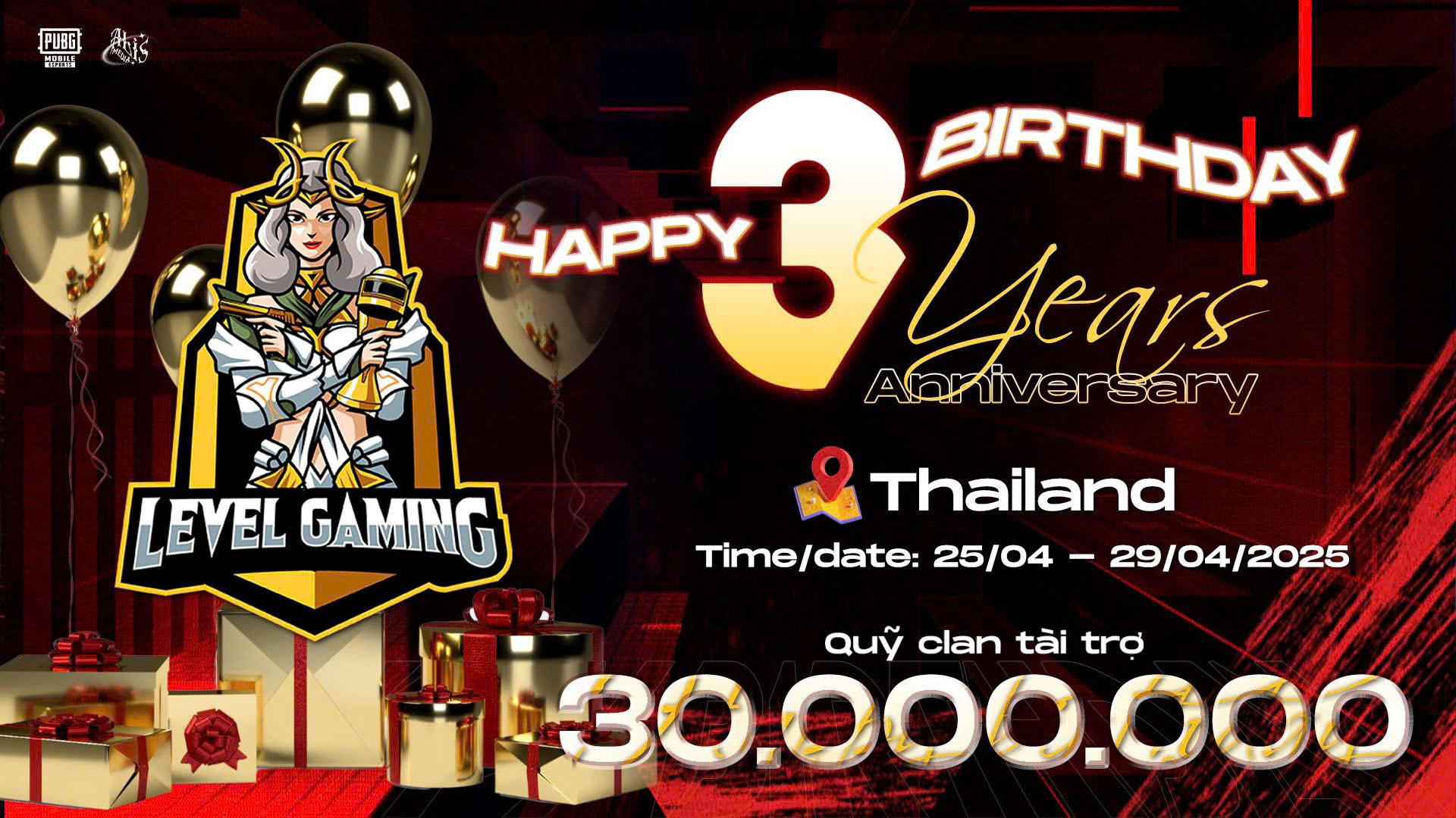Ban Điều Hành PUBG MOBILE thay mặt cho toàn thể cộng đồng chúc Level Gaming bước sang tuổi thứ 3 với nhiều năng lượng mới, gặt hái thêm nhiều thành công vang dội và luôn là điểm tựa vững chắc cho tất cả các thành viên.
