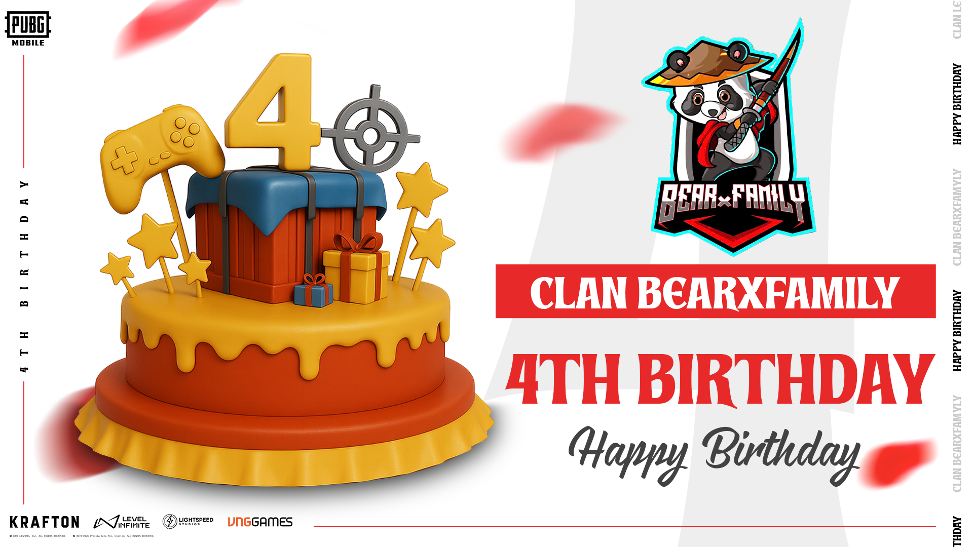 Toàn thể cộng đồng PUBG MOBILE cùng gửi lời chúc mừng sinh nhật 4 tuổi đến clan BEARxFAMILY – một cột mốc đáng tự hào, đánh dấu hành trình trưởng thành đầy ý nghĩa.